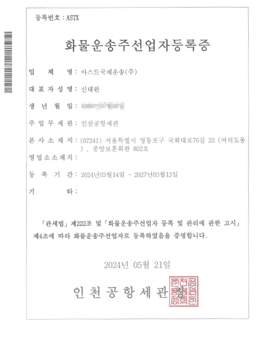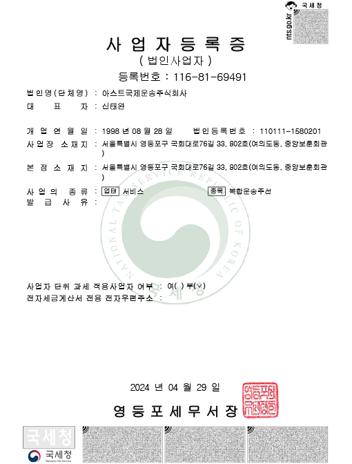AST-INTERNATIONAL TRANSPORT. CO., LTD.